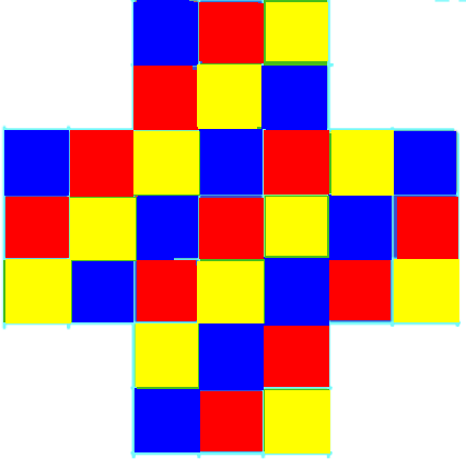 So if start with a hole at the center, and 32 pegs, there are 10 red pegs, 11 blue and yellow pegs, and after 31 moves, we have an parity change are left with odd number of red pegs, and even (0) number of blue and yellow pegs. So the final peg has to be in the red position. By symmetry or using coloring along the other diagonals, we can argue that final peg has to be in the symmetric red positions which is exactly what we got from the previous argument.